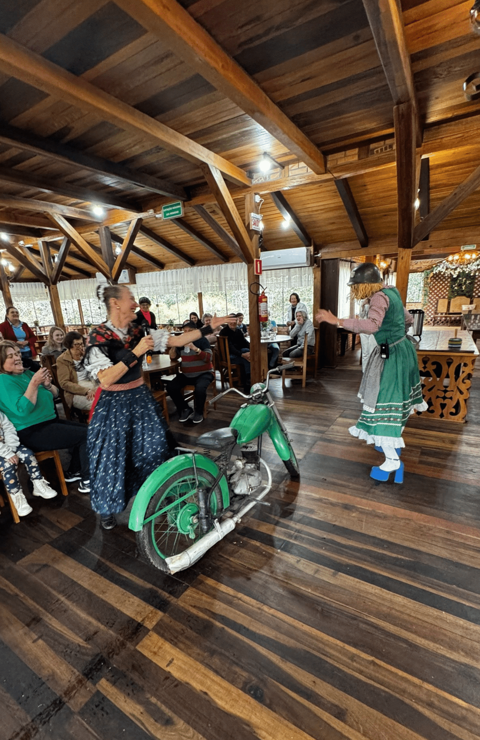 Espaço que integra restaurante, bar e área para festas e eventos, onde a gastronomia típica se encontra com teatro, danças e brincadeiras culturais.